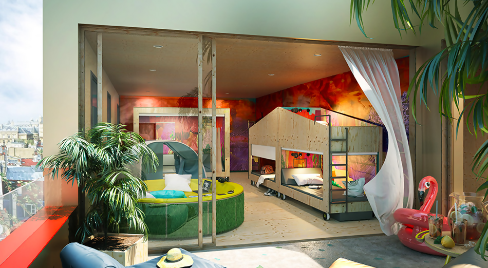 - 'Together': an ingenious modular sleeping area that guests share without sacrificing privacy, with spacious beds, private lockers, reading lights and USB ports, shared recreation areas and bathrooms.
