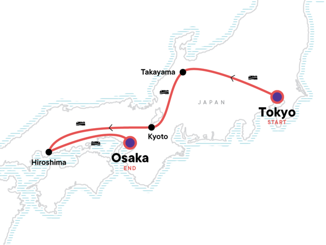 Explore both the ultramodern and traditional sides of Japan, experience Tokyo's vibrant nightlife, visit Kyoto's iconic temples and geishas, see the floating torii gate of Miyajima, stay in a traditional inn in Takayama to experience historic Japan