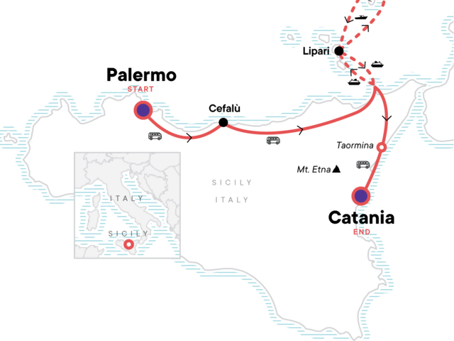 Your Welcome Moment: Welcome Moment - Meet Your CEO and Group. Orientation Walks in Palermo,Taormina and Catania. Panarea & Stromboli Islands Boat Excursion. All transport between destinations and to/from included activities.