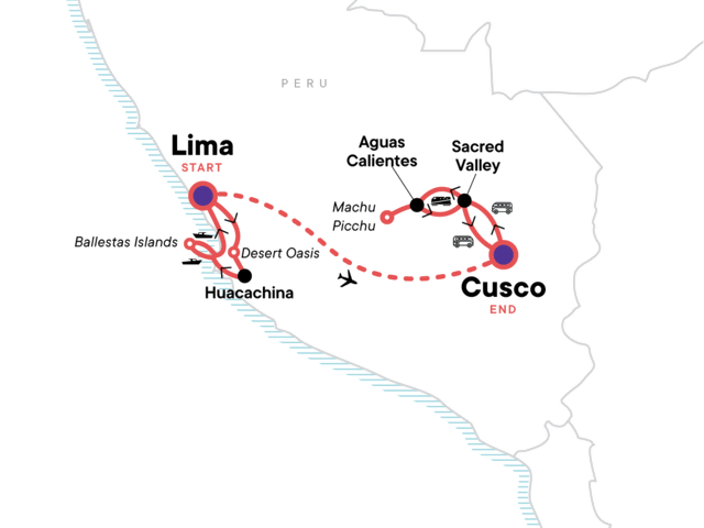 Ride dune buggies through the desert before sunset, Spot birds and sea lions on a boat trip to the Ballestas Islands, Check out some lesser-visited archaeological sites before hiking to a stunning waterfall in the Sacred Valley, Wander through the temples and terraces of Machu Picchu with an expert local guide, Take advantage of free time for optional activities